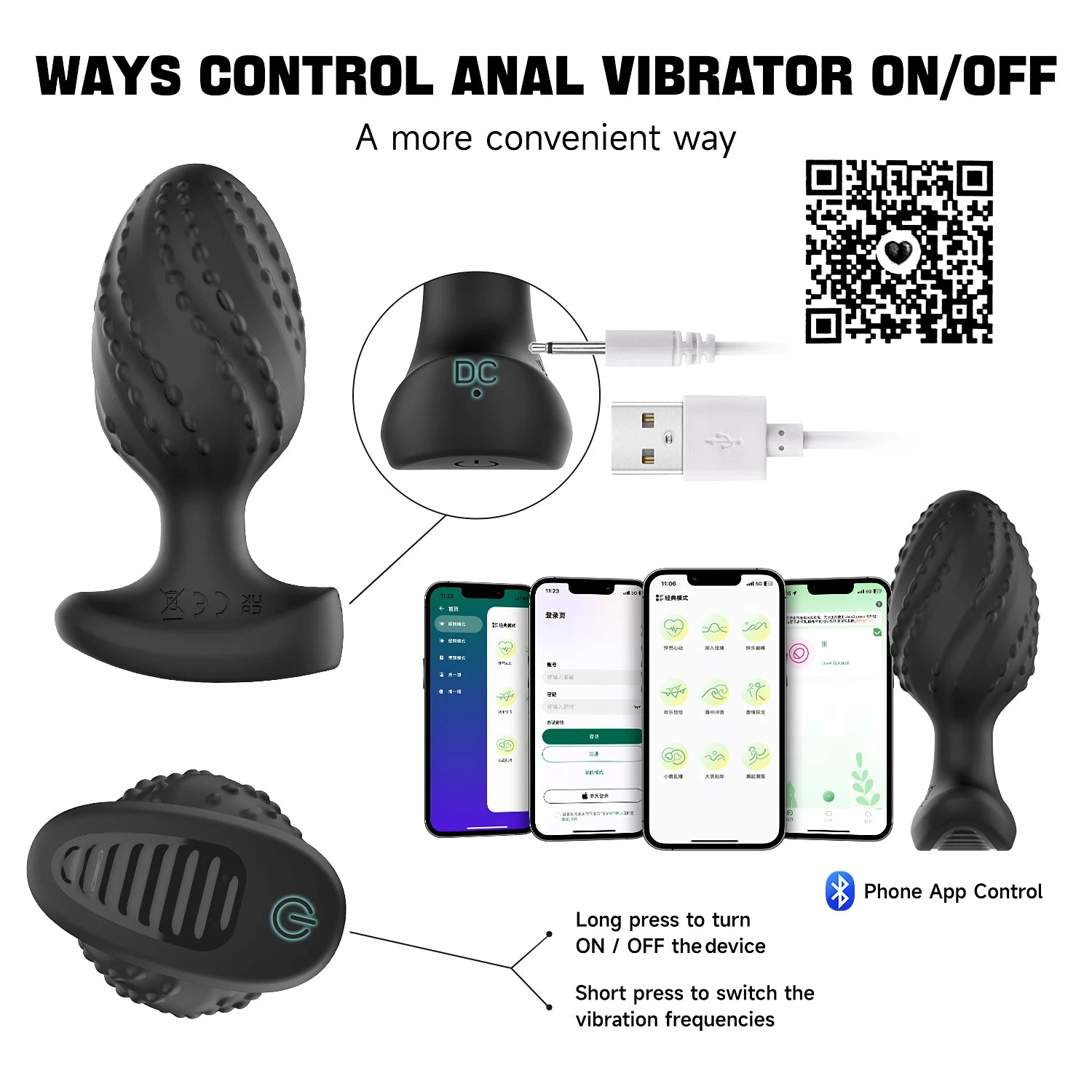 4. Press the button at the bottom of the remote control to turn on the heating function, and long press for 3 seconds to turn off the heating function. (In order to better protect the human body, the product can feel the temperature increase at the glans position about 5 minutes after turning on the heating function)